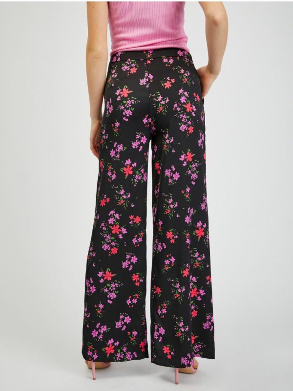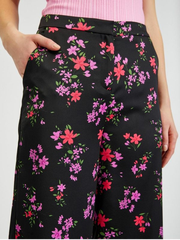 Bekleidung Hosen, Shorts, Leggings | Orsay Schwarze Damenhose Mit Weitem Bein Und Blumenmuster