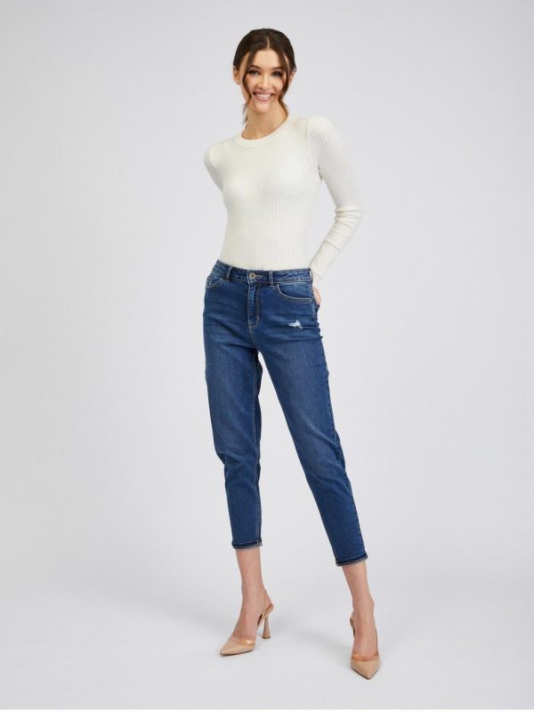 Bekleidung Jeans | Orsay Dunkelblaue Cropped Mom Fit Damenjeans