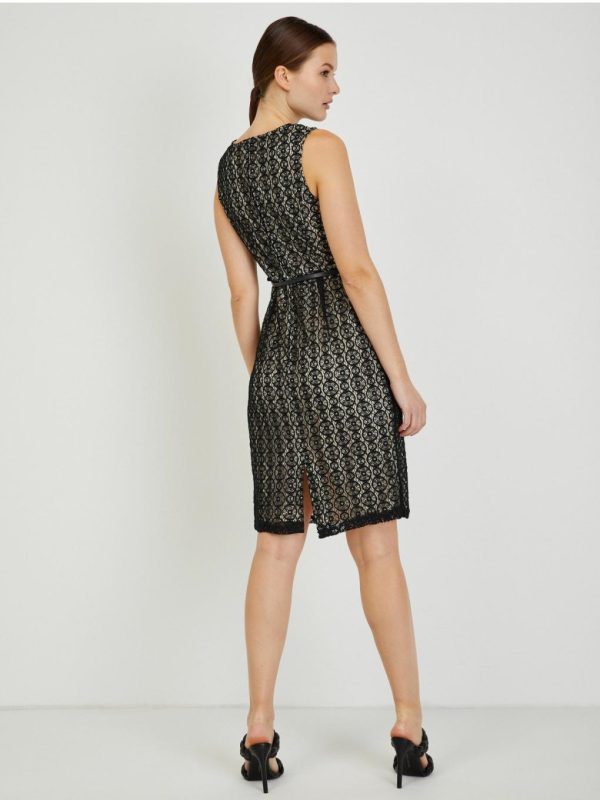 Bekleidung Kleider | Orsay Beige-schwarzes Damen Etuikleid Mit Gürtel