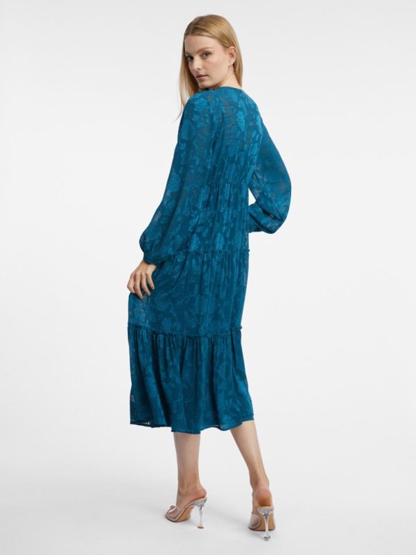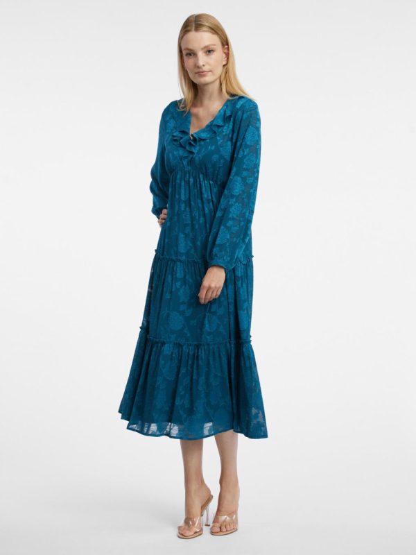 Bekleidung Kleider | Orsay Blaues Damen-Midikleid Mit Blumenmuster