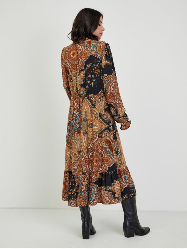 Bekleidung Kleider | Orsay Braunes Gemustertes Damen Midikleid