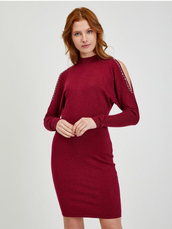 Bekleidung Kleider | Orsay Burgunderrotes Damen-Pulloverkleid Mit Ausschnitten