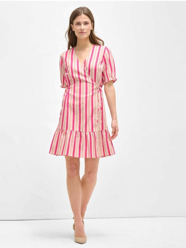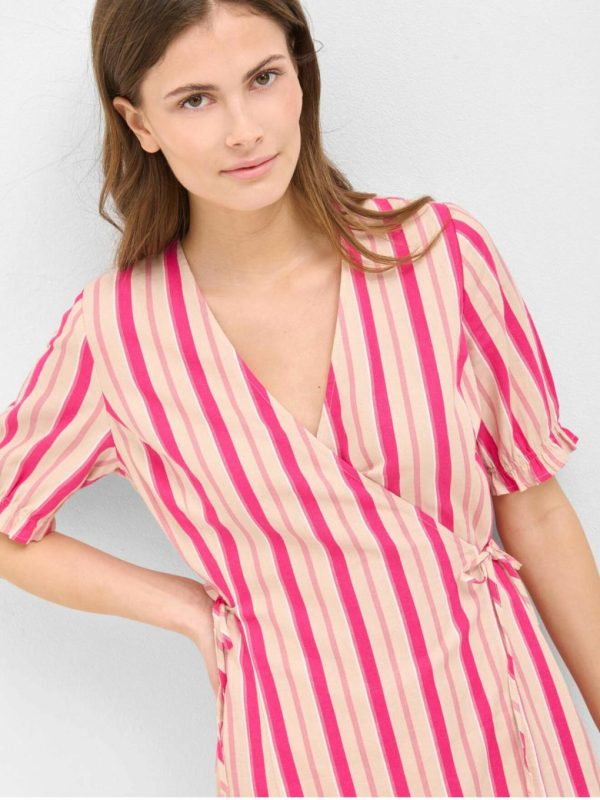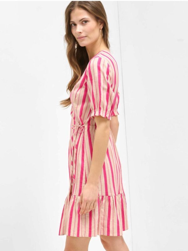 Bekleidung Kleider | Orsay Rosa Gestreiftes Leinen Wickelkleid