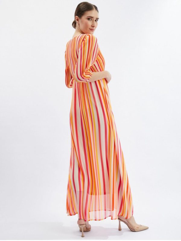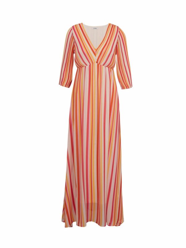 Bekleidung Kleider | Orsay Rosa-orange Gestreiftes Maxikleid Für Damen