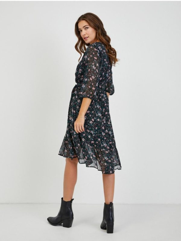 Bekleidung Kleider | Orsay Schwarzes Damen-Blumenkleid Mit Bindung