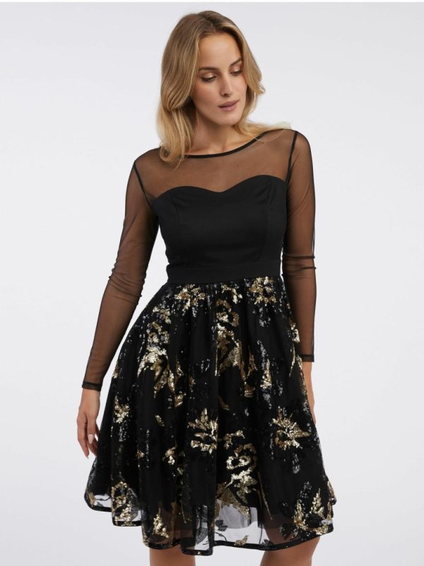 Bekleidung Kleider | Orsay Schwarzes Paillettenkleid Für Damen