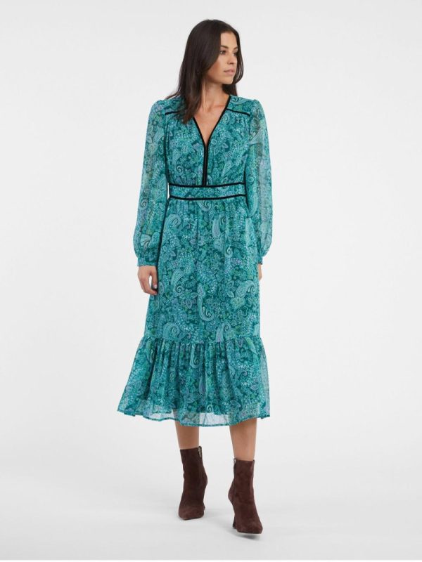 Bekleidung Kleider | Orsay Türkisfarbener Gemusterter Damen-Midi