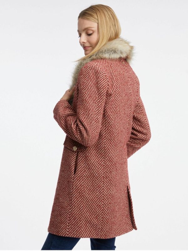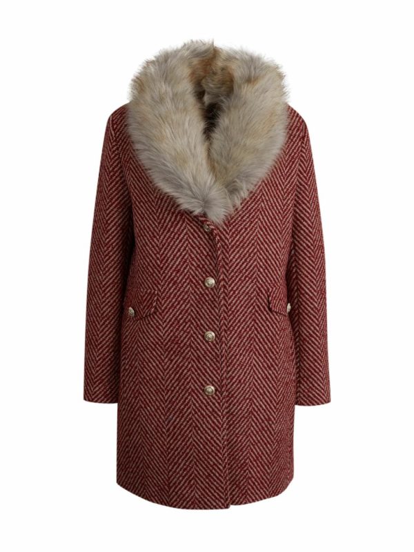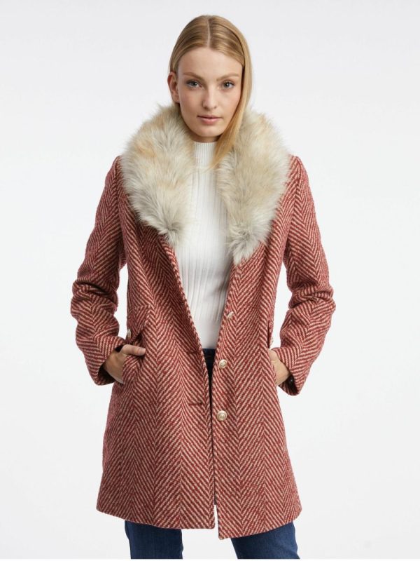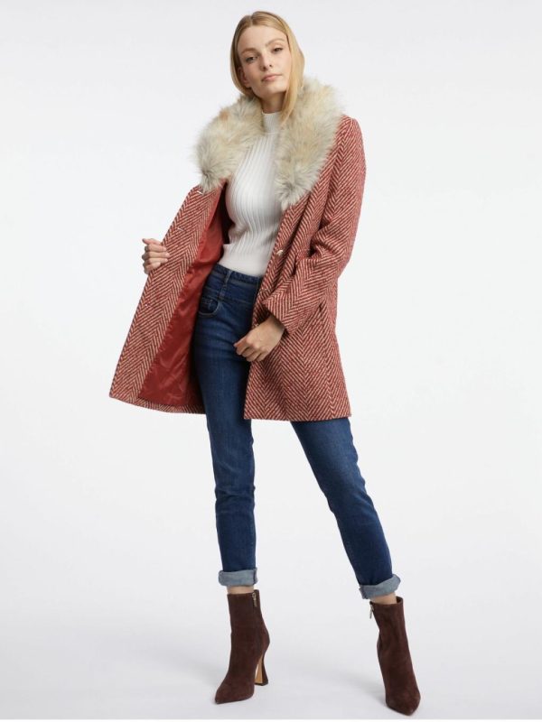 Bekleidung Mäntel | Orsay Roter Gemusterter Damenmantel Mit Kunstpelz