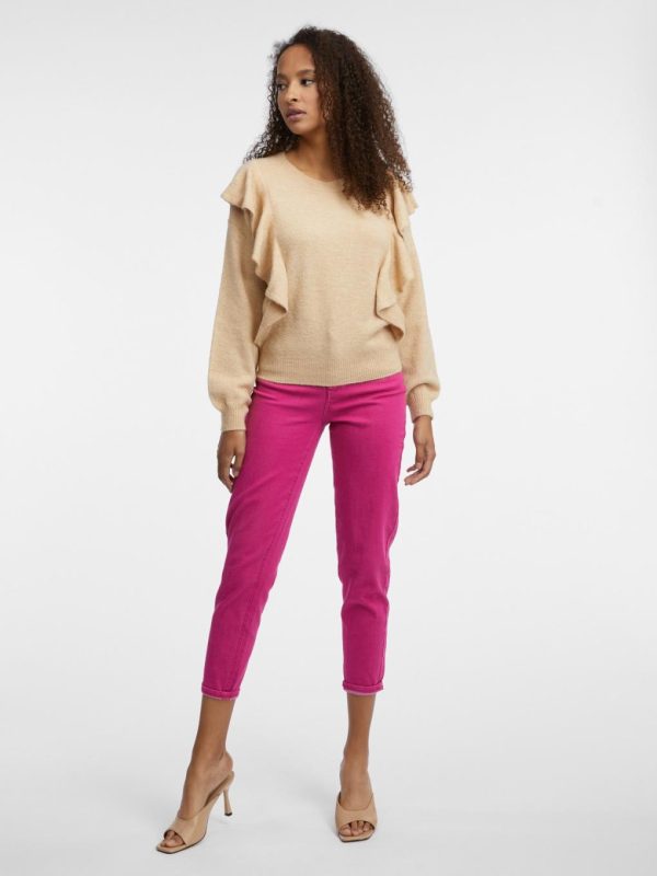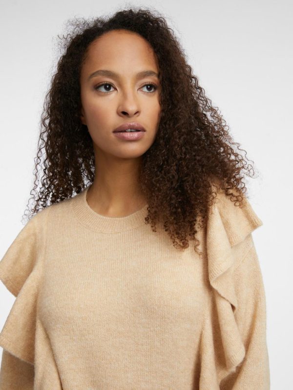 Bekleidung Pullover Und Hoodies | Orsay Beigefarbener Damen-Rüschen-Pullover