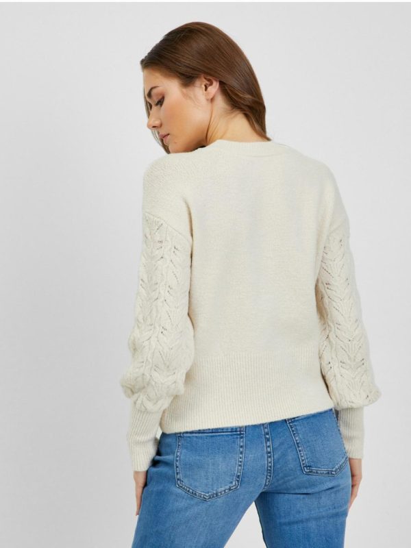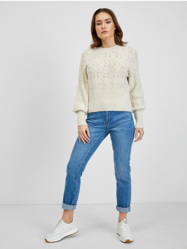 Bekleidung Pullover Und Hoodies | Orsay Cremefarbener Gemusterter Damenpullover Mit Ballonärmeln