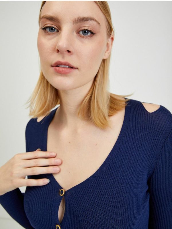 Bekleidung Pullover Und Hoodies | Orsay Dunkelblaue Damenstrickjacke Mit Ausschnitten