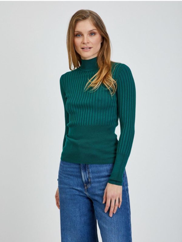 Bekleidung Pullover Und Hoodies | Orsay Grüner Gerippter Pullover
