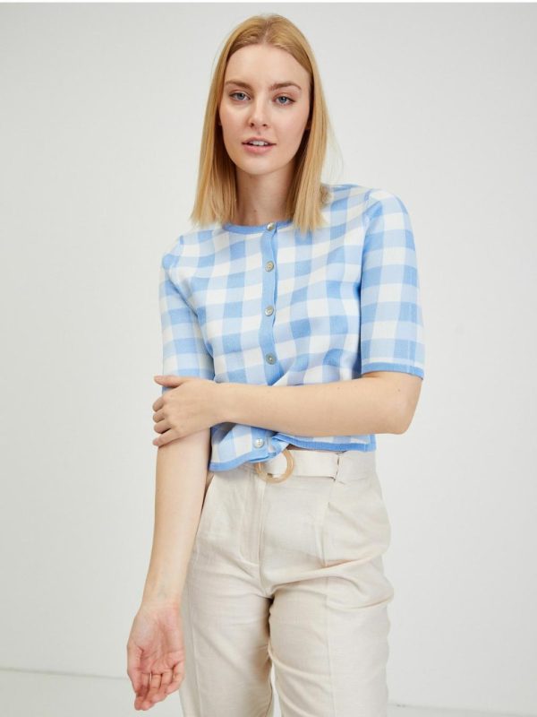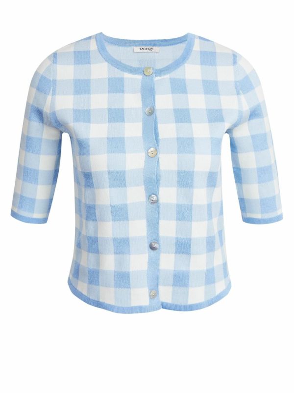 Bekleidung Pullover Und Hoodies | Orsay Hellblau Karierte Damen Cardigan