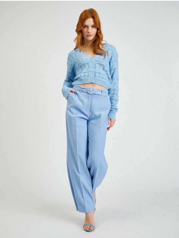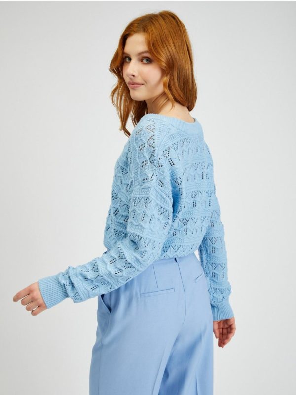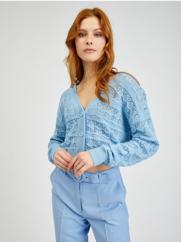 Bekleidung Pullover Und Hoodies | Orsay Hellblaue Gemusterte Damen Strickjacke
