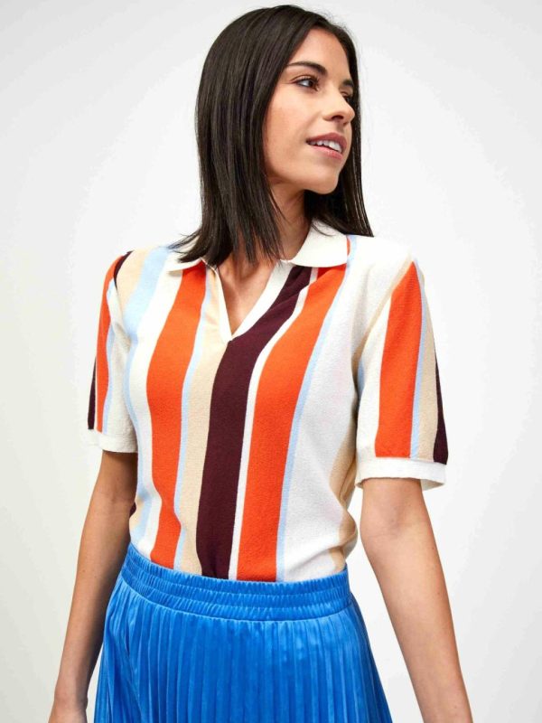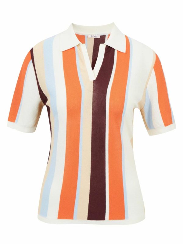 Bekleidung Pullover Und Hoodies | Orsay Orange-cremefarbener Leichter Gestreifter Pullover Mit Kurzen Ärmeln