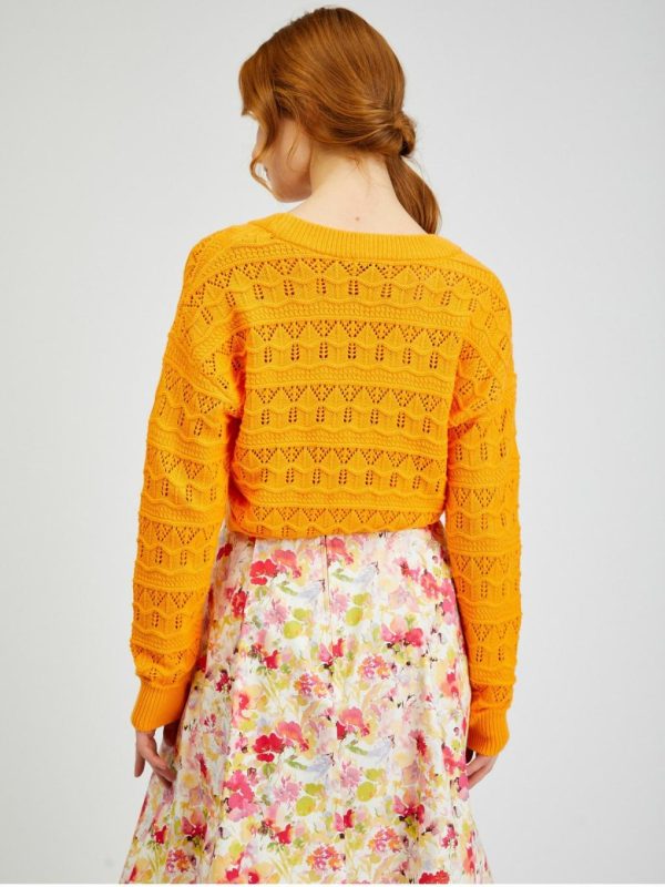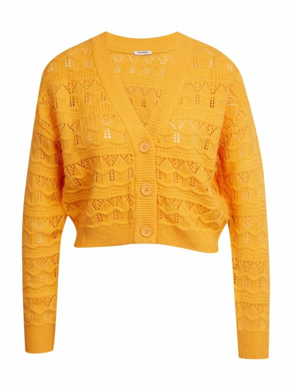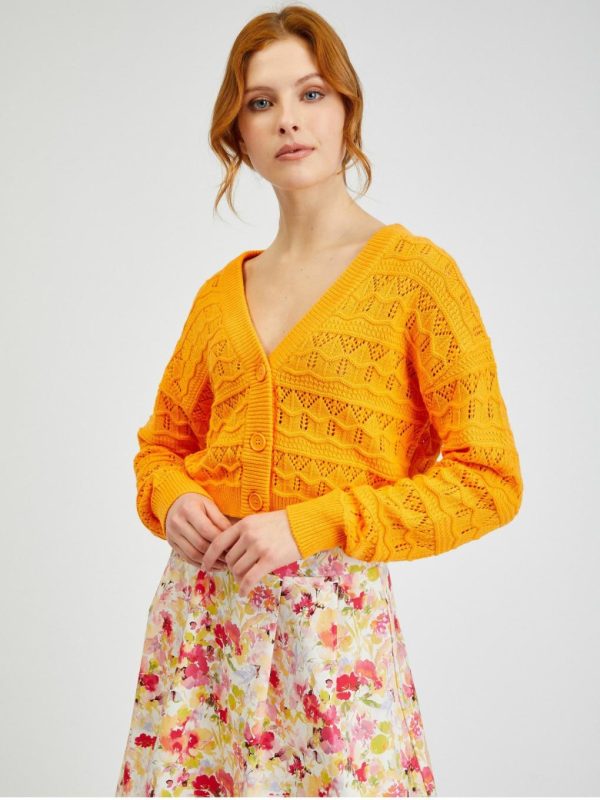Bekleidung Pullover Und Hoodies | Orsay Orangefarbene Gemusterte Damen-Strickjacke
