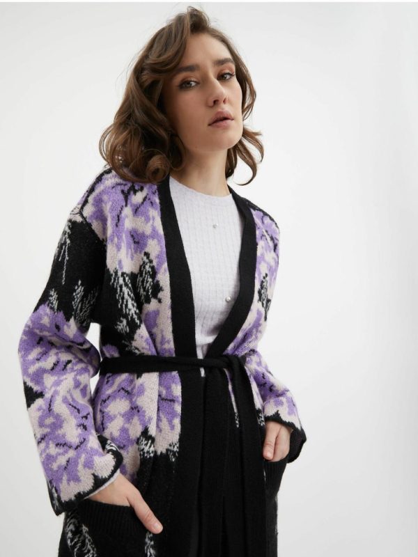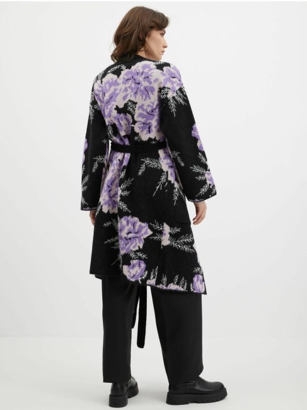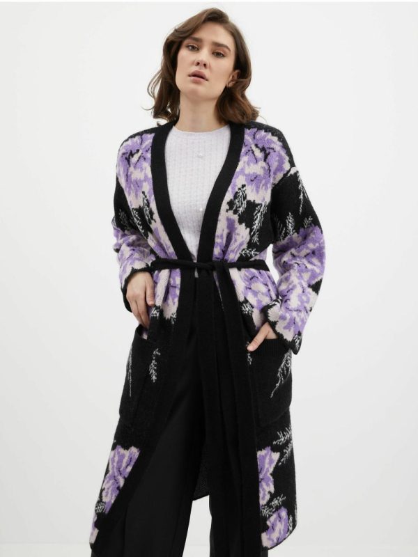 Bekleidung Pullover Und Hoodies | Orsay Schwarz-lila Damen Cardigan Mit Blumenmuster