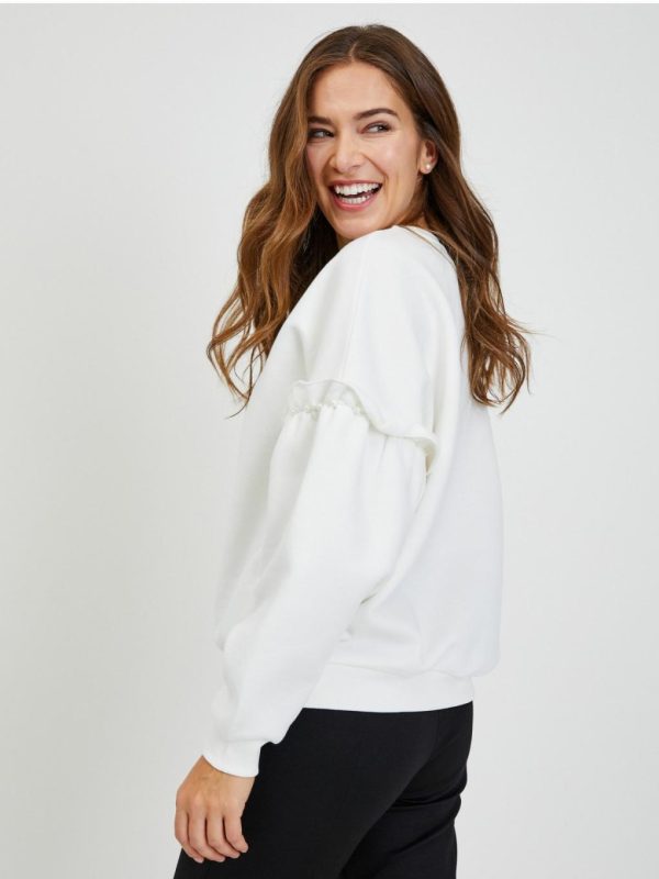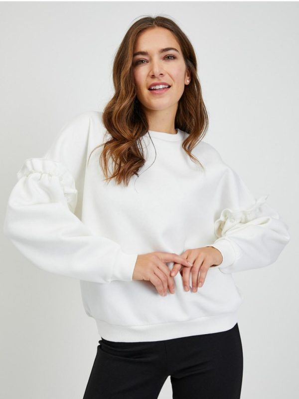 Bekleidung Pullover Und Hoodies | Orsay Weißes Damen Sweatshirt Oversize Mit Ballonärmeln