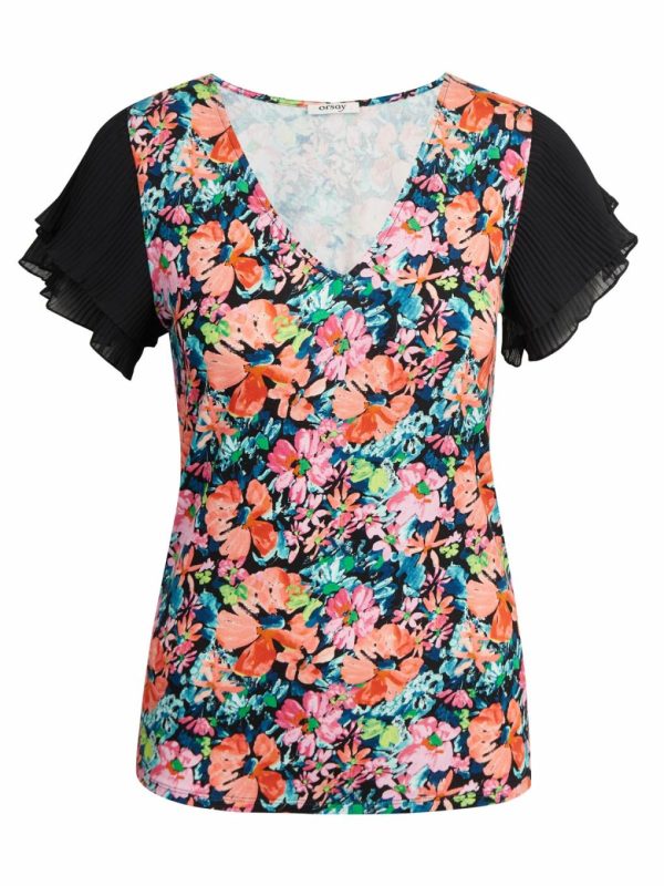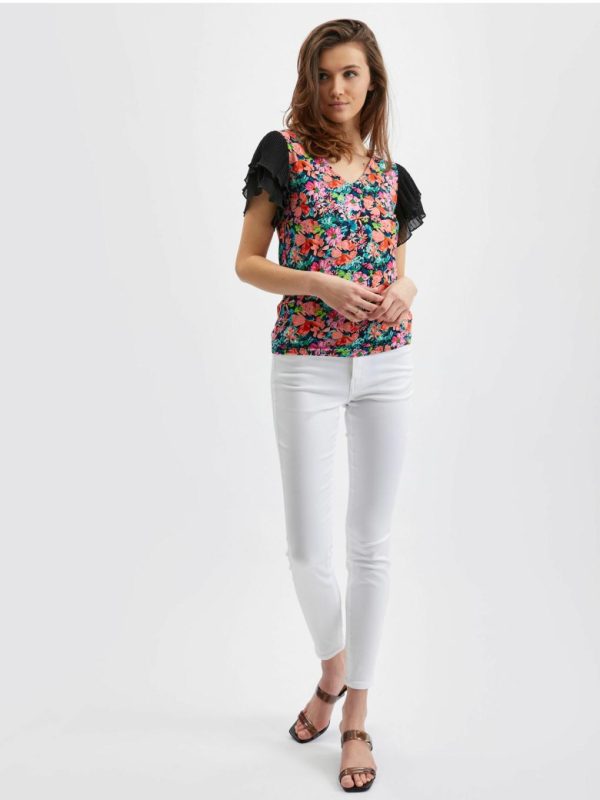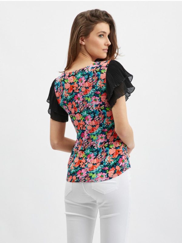 Bekleidung Tops, T-Shirts, Hemden | Orsay Blaue Und Schwarze Damenbluse Mit Blumen