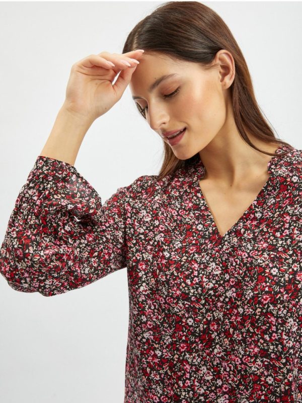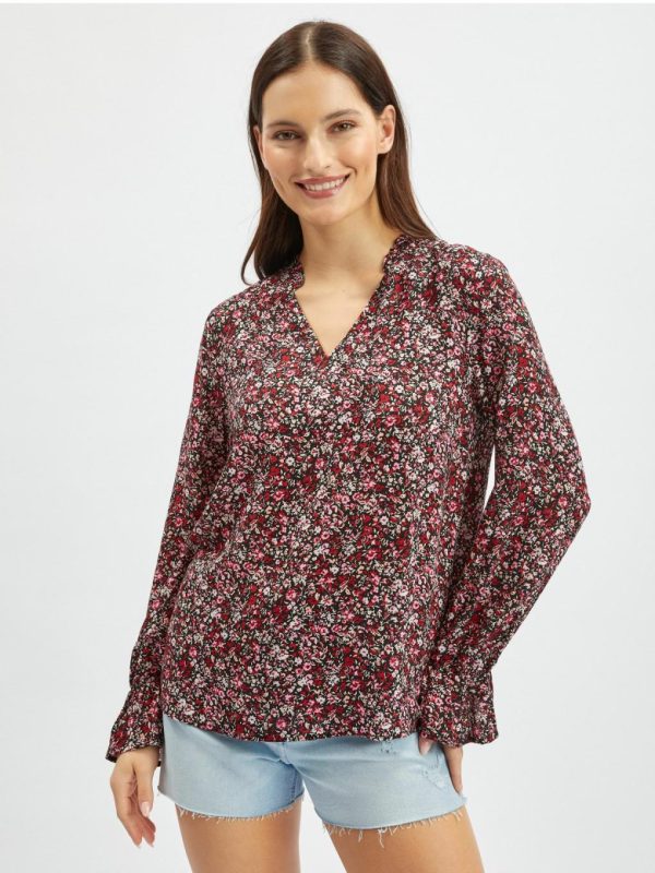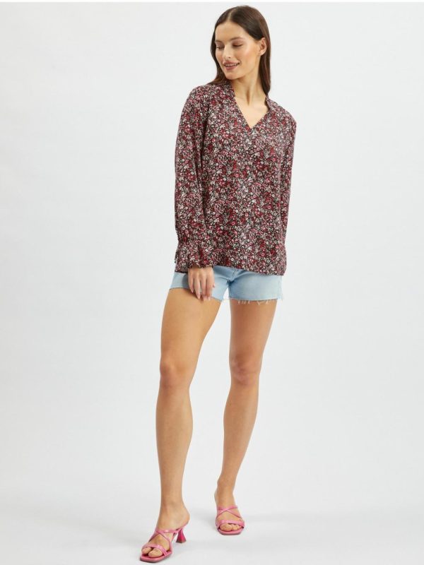 Bekleidung Tops, T-Shirts, Hemden | Orsay Burgunderfarbene Damenbluse Mit Blumenmuster