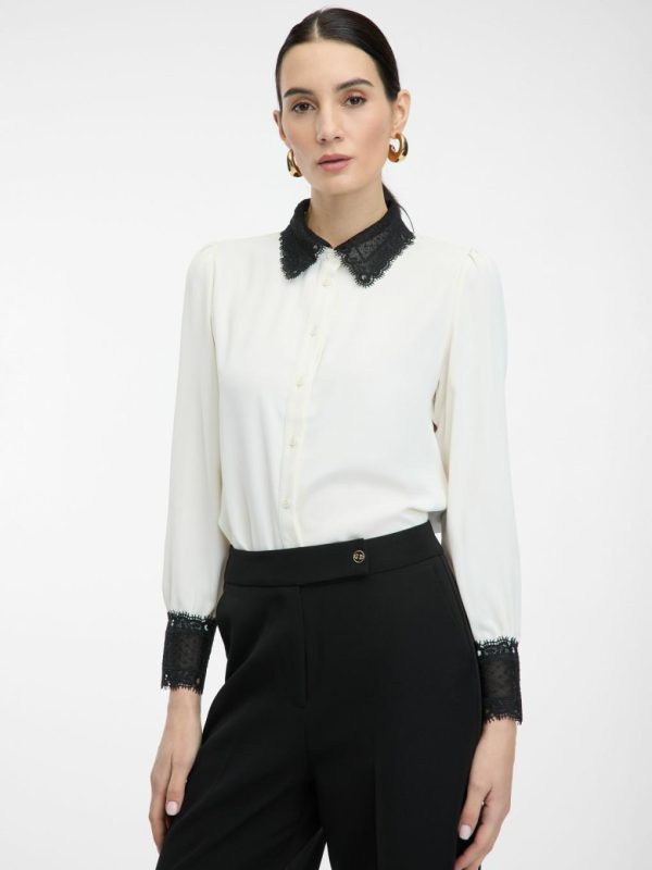 Bekleidung Tops, T-Shirts, Hemden | Orsay Cremefarbene Damenbluse Mit Kontrastkragen