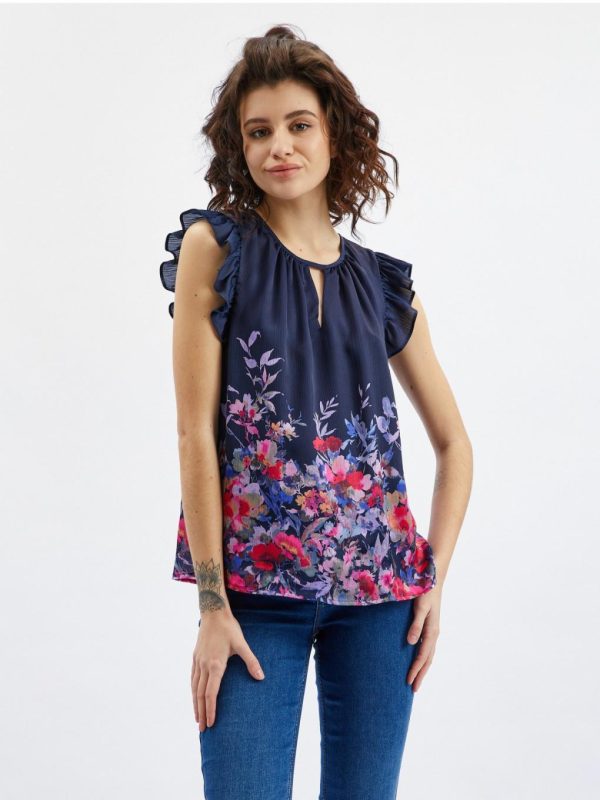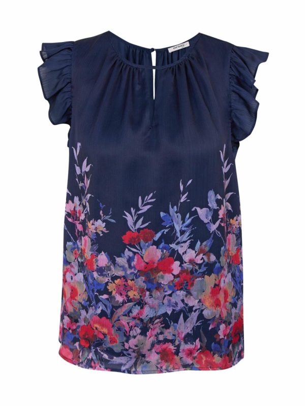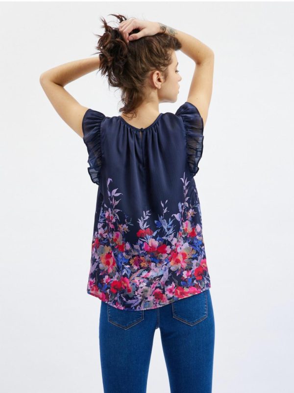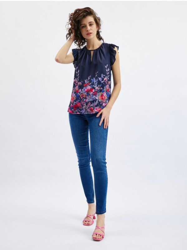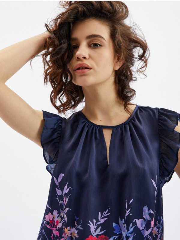Bekleidung Tops, T-Shirts, Hemden | Orsay Dunkelblaue Damenbluse Mit Blumenmuster Und Kräuselung