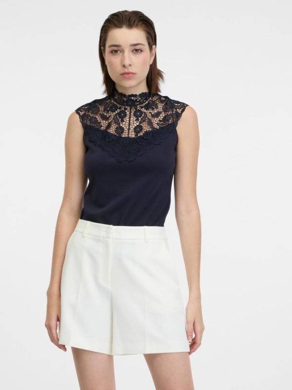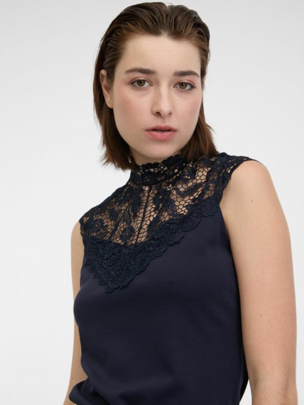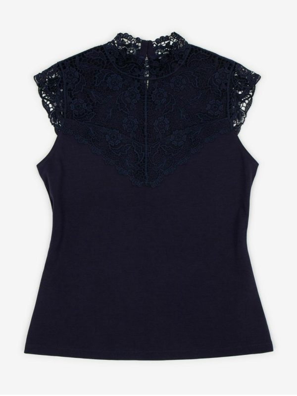 Bekleidung Tops, T-Shirts, Hemden | Orsay Dunkelblaues Damen-T-Shirt Mit Spitzendetail