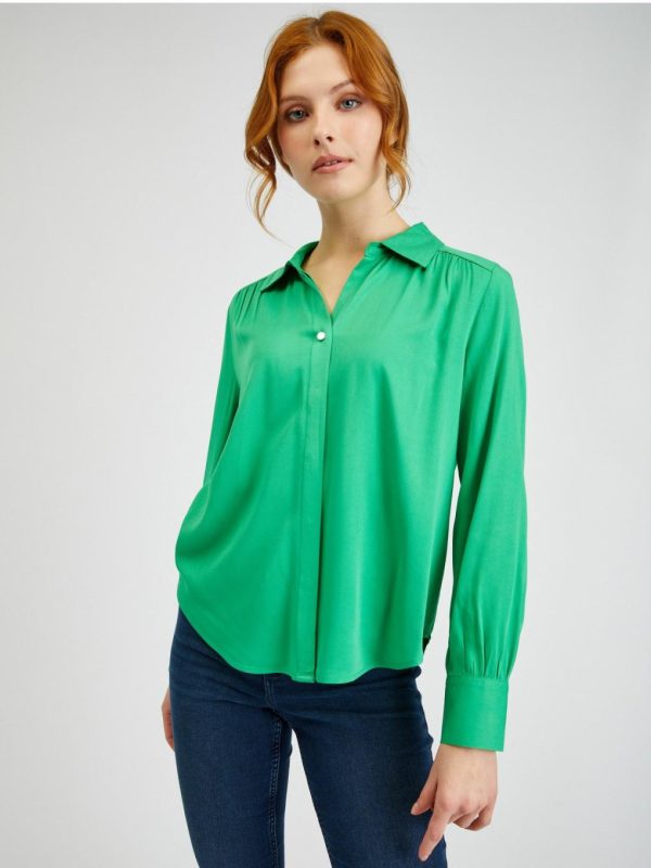 Bekleidung Tops, T-Shirts, Hemden | Orsay Grüne Damen-Satinbluse