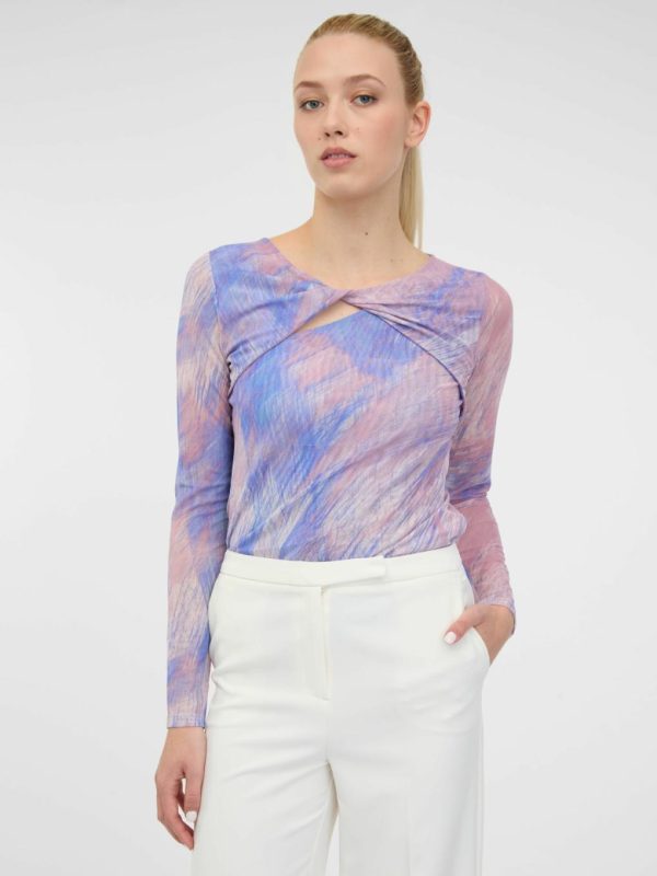 Bekleidung Tops, T-Shirts, Hemden | Orsay Hellrosa Gemustertes Damen-T-Shirt Mit Langen Ärmeln