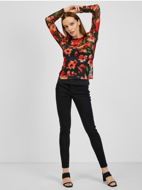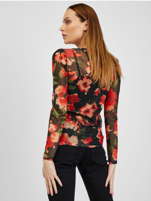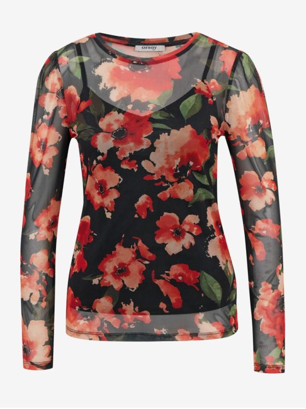 Bekleidung Tops, T-Shirts, Hemden | Orsay Rot-schwarzes Damen T-Shirt Mit Blumenmuster