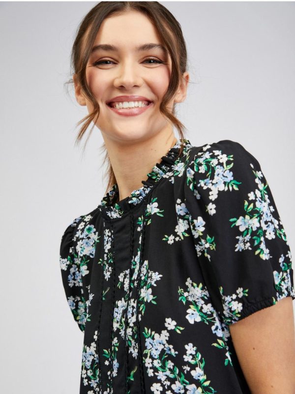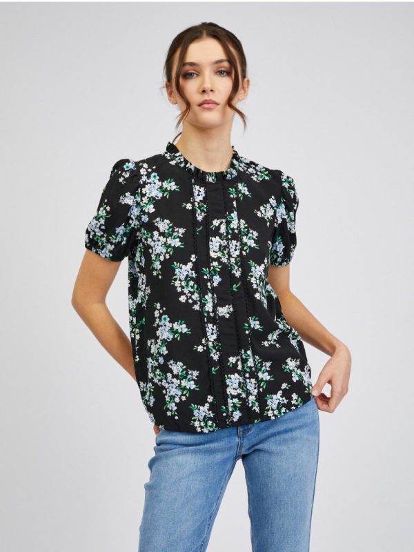 Bekleidung Tops, T-Shirts, Hemden | Orsay Schwarze Damenbluse Mit Blumenmuster