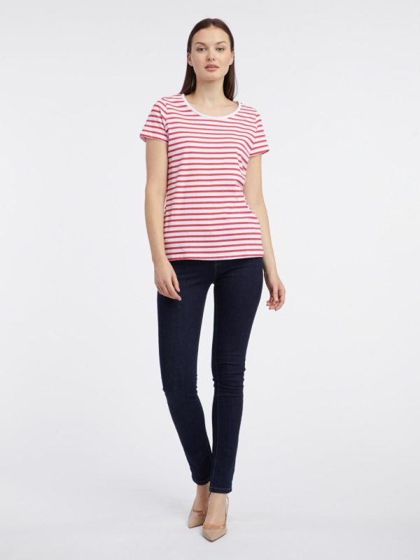 Bekleidung Tops, T-Shirts, Hemden | Orsay Weiß-rot Gestreiftes Damen-Shirt