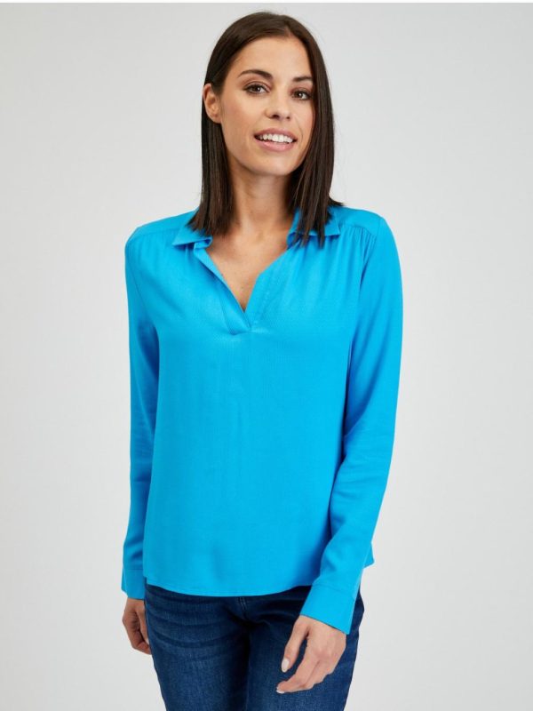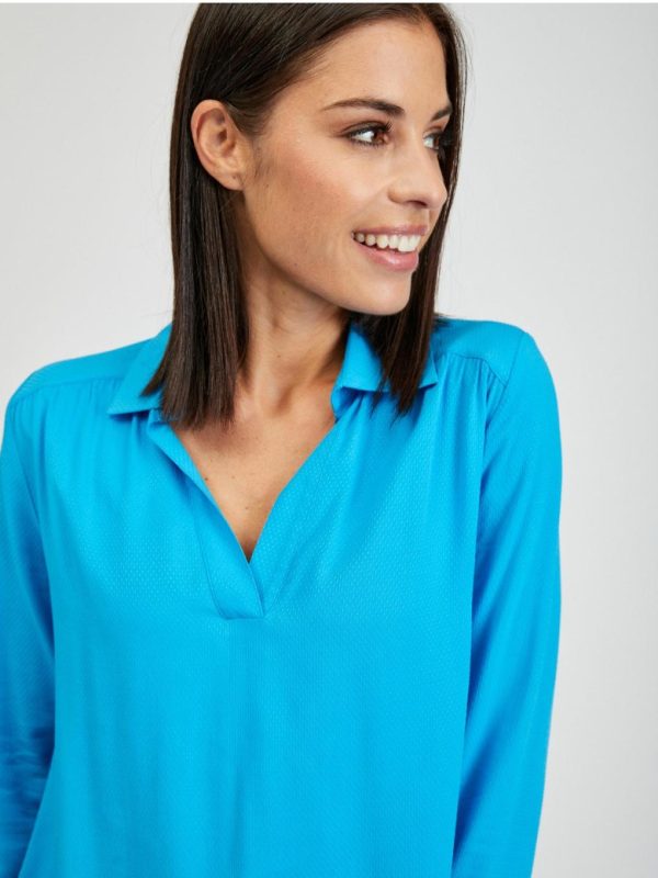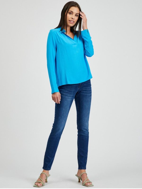 Orsay Blaue Damenbluse mit V-Ausschnitt