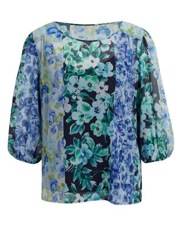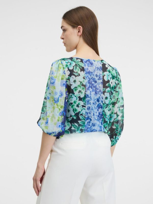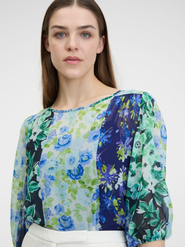 Orsay Blaue Geblümte Damenbluse mit Dreiviertelärmeln