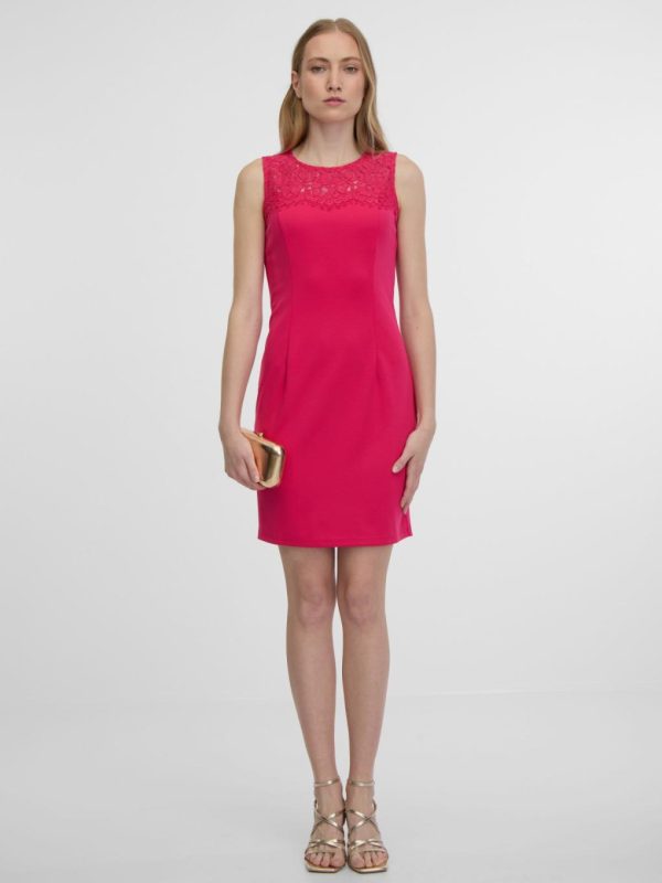 Orsay Damen Etuikleid Dunkelrosa mit Spitzendetails