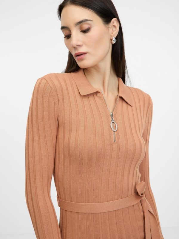 Orsay Damen-Midikleid in Hellbraun mit Wickelschnitt