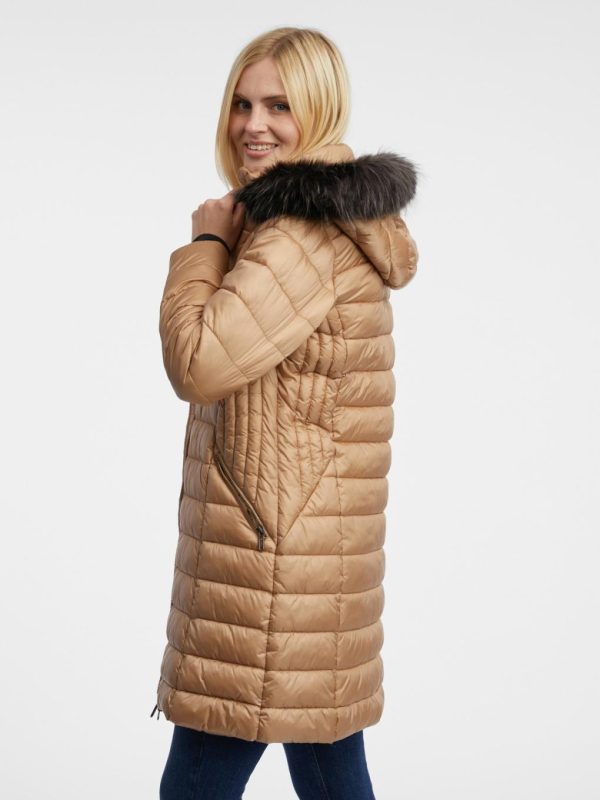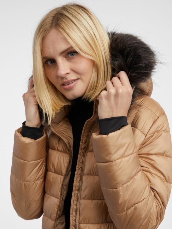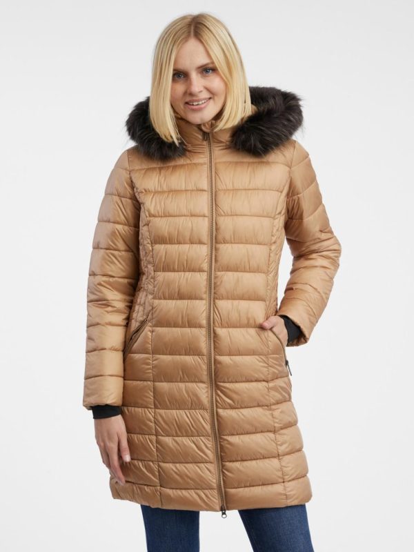 Orsay Damen-Steppmantel in Hellbraun – Gerader Wickelschnitt