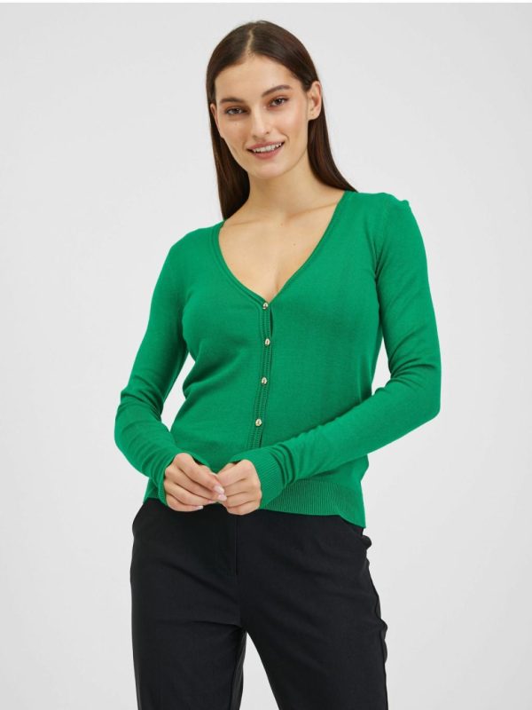 Orsay Damen Strickjacke Grün mit V-Ausschnitt | Regular Fit