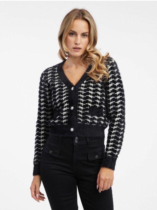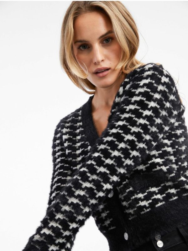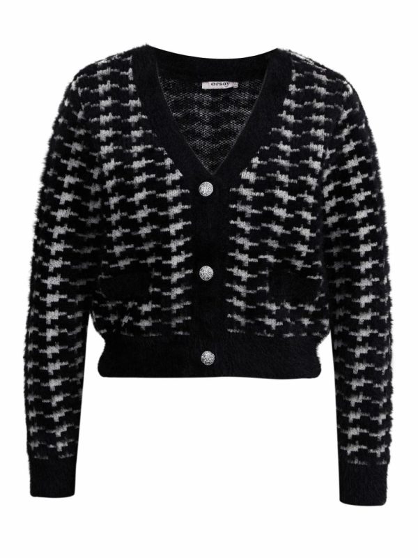 Orsay Damen Strickjacke mit V-Ausschnitt in Weiß-Schwarz