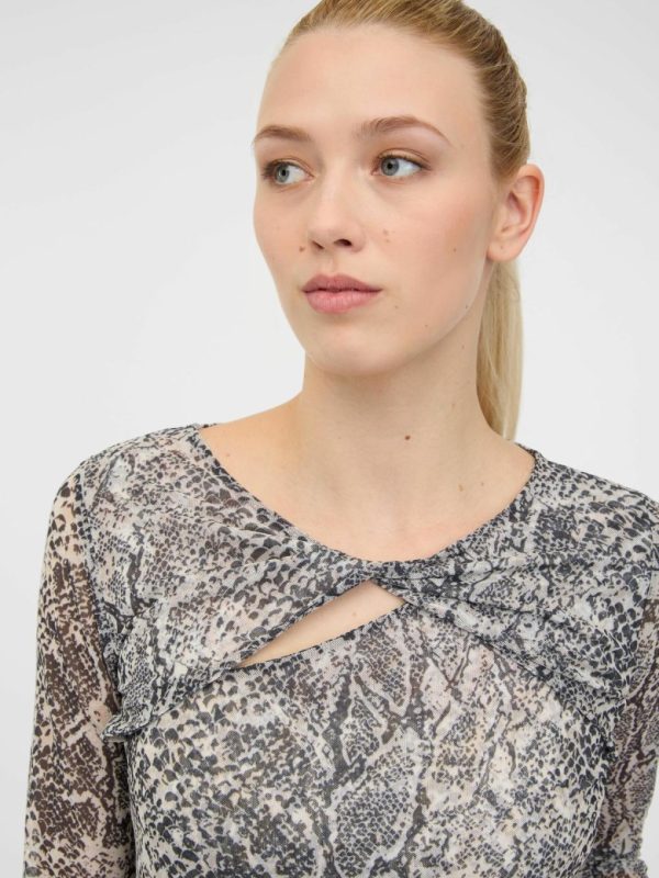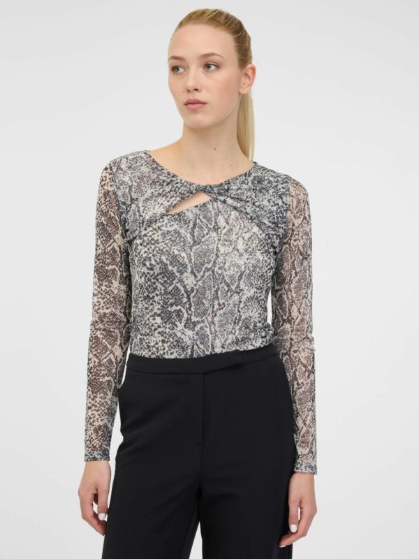 Bekleidung Tops, T-Shirts, Hemden | Orsay Blaues Gemustertes Damen-T-Shirt Mit Langen Ärmeln