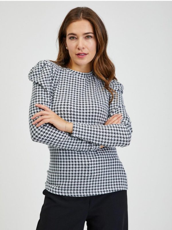 Orsay Damen T-Shirt Schwarz-weiß Karomuster Slim Fit