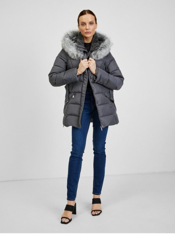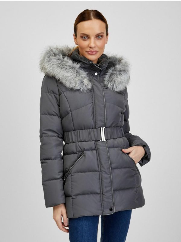 Orsay Damen Winterjacke mit Gürtel in Dunkelgrau