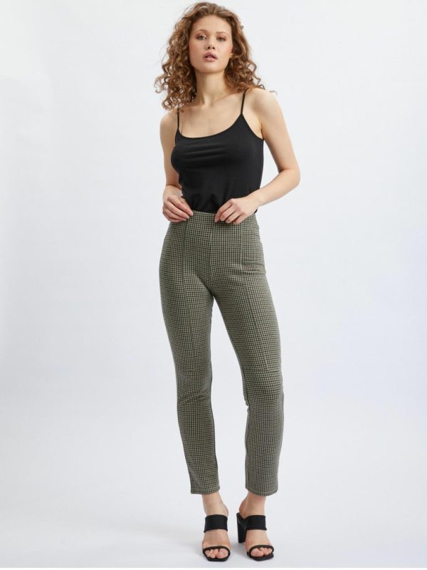 Orsay Damenhose Grün Kariert Slim Fit Mittelhohe Taille