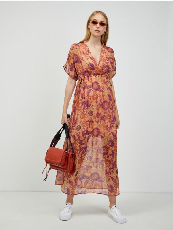 Orsay Orangefarbenes Maxikleid Mit Blumenmuster – Eleganter Sommerlook