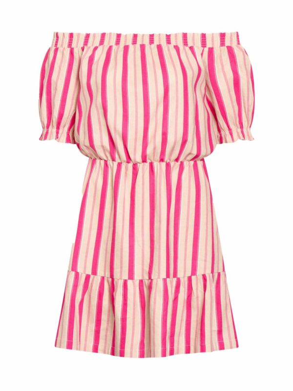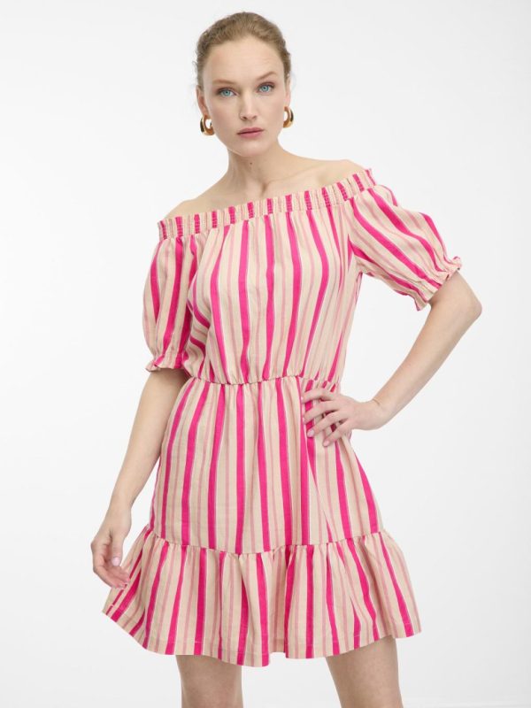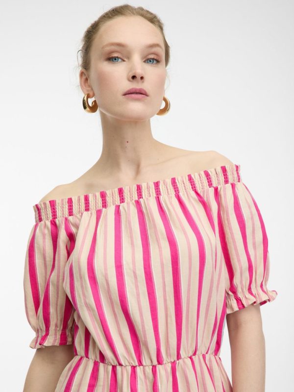 Orsay Rosa Gestreiftes Leinenkleid mit ausgestellten Schultern